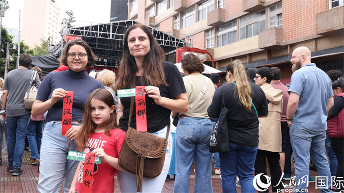家住附近的拉爾西奧帶著自己的女兒來到攤位前,讓志愿者幫忙書寫了自己與女兒的名字?!柏S富的表演、美妙的音樂,還有特色美食,我感受到了節(jié)日的喜慶?!崩瓲栁鲓W表示,希望明年能夠繼續(xù)擁有這樣的歡樂體驗(yàn)。