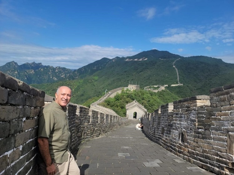 瓦里夫·庫邁哈在游覽長城時留影。受訪者供圖