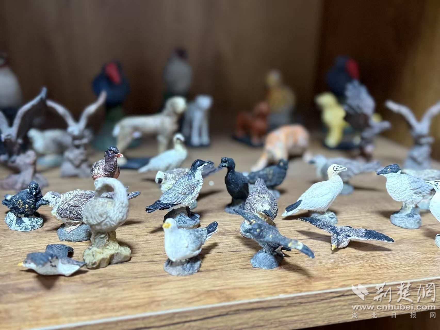 應(yīng)城膏塑的非遺傳承人鐘志平的微型膏塑作品。記者黃菲 攝
