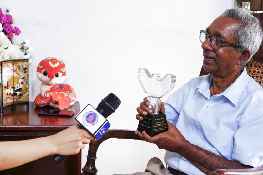 1月30日,在斯里蘭卡首都科倫坡,斯里蘭卡中國協(xié)會主席吉尼斯·德席爾瓦接受新華社記者采訪。 新華社記者 伍岳 攝