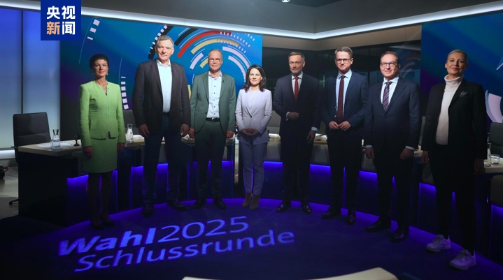 當?shù)貢r間2月20日晚,在德國聯(lián)邦議院選舉前三天,來自八個政黨的代表進行最后一場電視辯論,就烏克蘭危機、歐洲安全、義務(wù)兵役和氣候政策等關(guān)鍵議題展開了激烈交鋒。 聯(lián)盟黨(由基民盟及其姐妹黨基社盟組成)、社民黨和綠黨的總理候選人默茨、朔爾茨及哈貝克并未出席。