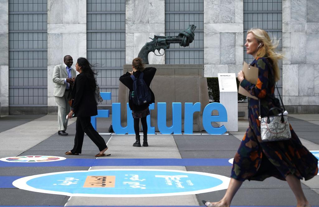 2024年9月23日,在位于紐約的聯(lián)合國總部,與會者從聯(lián)合國未來峰會會場外走過。新華社記者吳曉凌攝