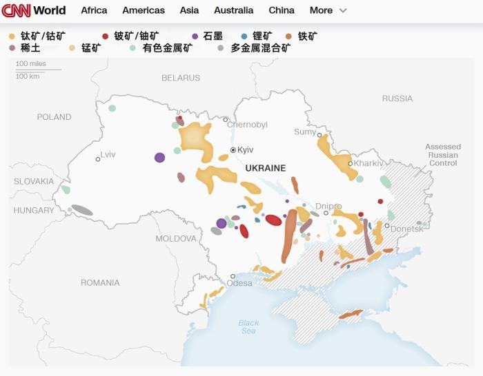 烏克蘭主要礦產(chǎn)分布一覽。圖/美國有線電視新聞網(wǎng)