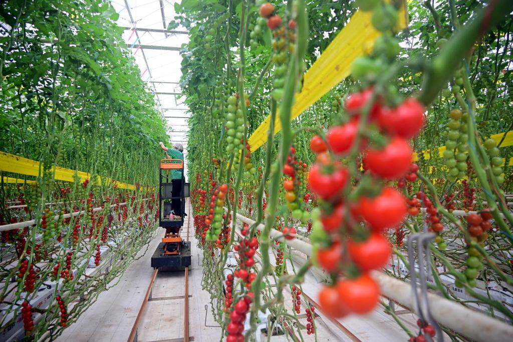 3月4日,在山東省萊西市望城街道凱盛浩豐現(xiàn)代設(shè)施農(nóng)業(yè)產(chǎn)業(yè)園,員工在采摘西紅柿。新華社記者李紫恒攝