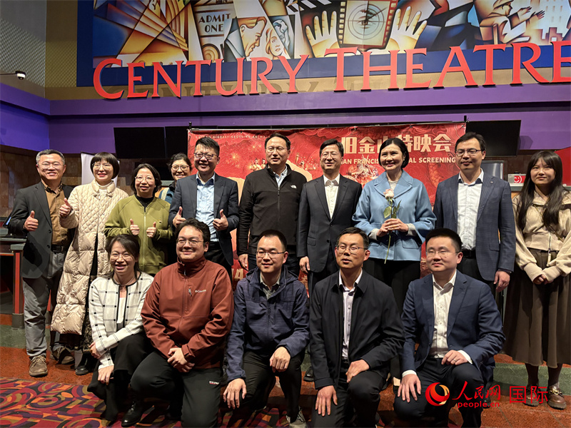 中國駐舊金山總領(lǐng)館外交官們在特映會現(xiàn)場合影。人民網(wǎng)記者 鄧圩攝