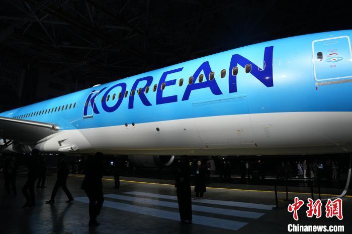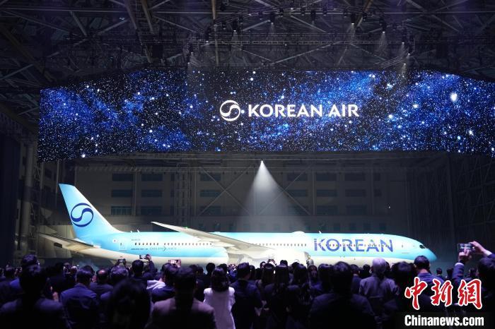 當(dāng)?shù)貢r間3月11日,大韓航空在位于首爾江西區(qū)的總部機(jī)庫舉辦揭幕儀式,正式發(fā)布全新的企業(yè)標(biāo)識(Corporate Identity, CI),并展示全新企業(yè)圖標(biāo)(Logo)與新版飛機(jī)涂裝,標(biāo)志著大韓航空品牌形象的全面煥新升級。圖為揭幕儀式現(xiàn)場?!≈行戮W(wǎng)記者 劉旭 攝