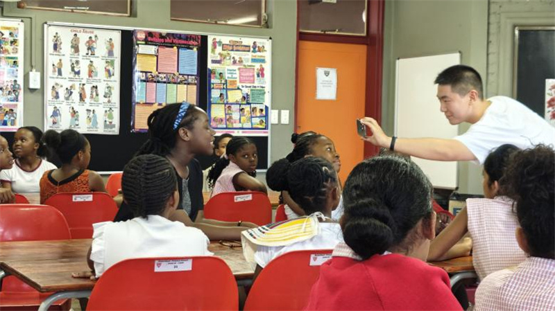 南非學生介紹南非。南非中國文化中心孔子課堂供圖