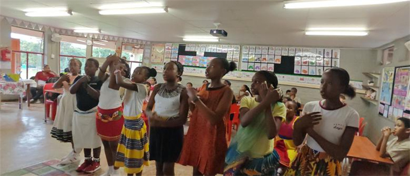 南非學生表演非洲歌舞。南非中國文化中心孔子課堂供圖