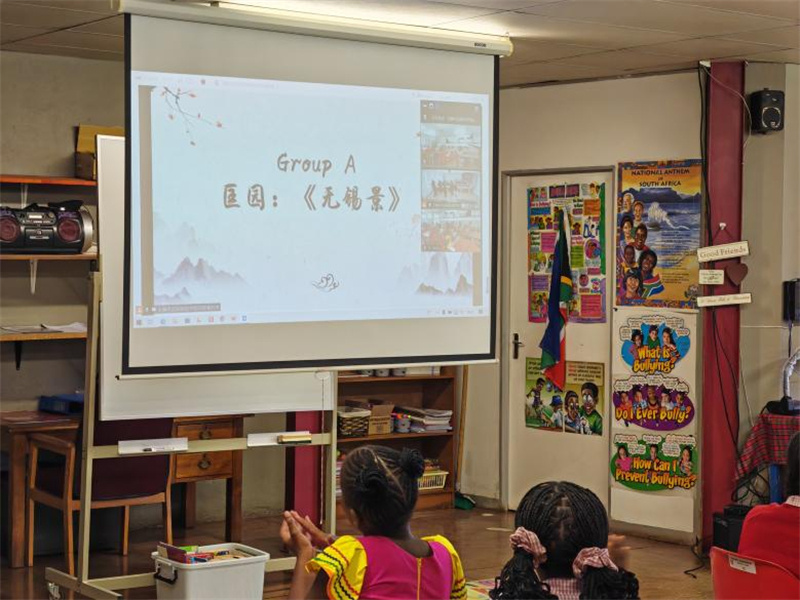 匡園學生介紹無錫景。南非中國文化中心孔子課堂供圖
