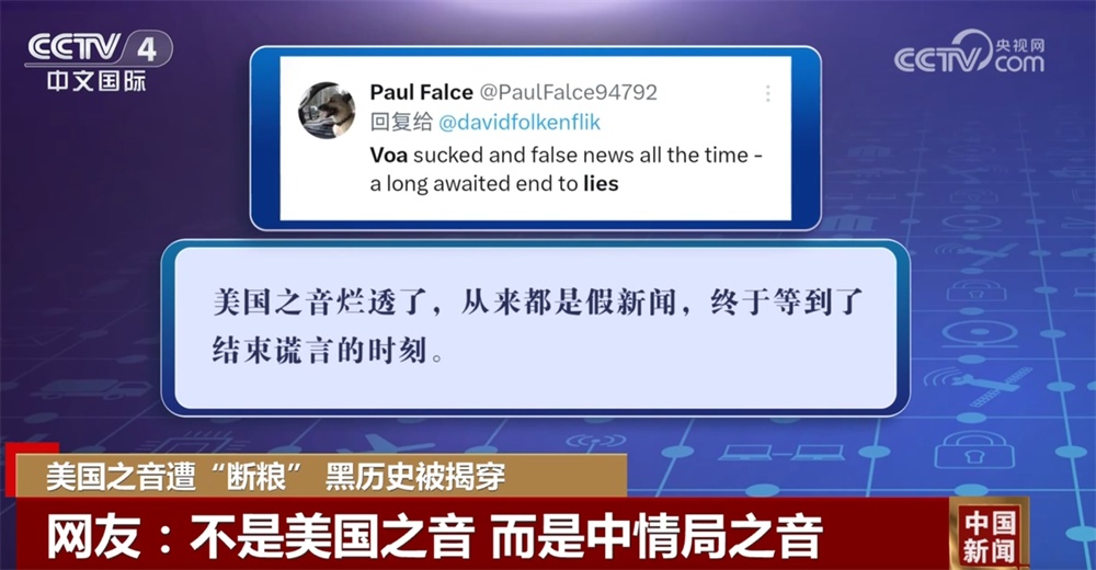 有網友指出,“美國之音爛透了,從來都是假新聞,終于等到了結束謊言的時刻?!薄安皇敲绹?,而是中情局之音?!薄懊绹艟褪抢?。