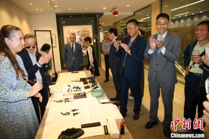 展覽現場,來自中國的書法家們揮毫潑墨,嘉賓們也紛紛躍躍欲試,沉浸在書法創(chuàng)作的樂趣中。