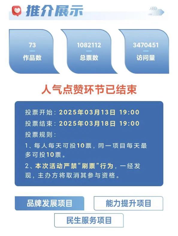 3月14日-18日,為期5天的網絡投票總訪問量超300萬人次,總票數(shù)超過108萬。