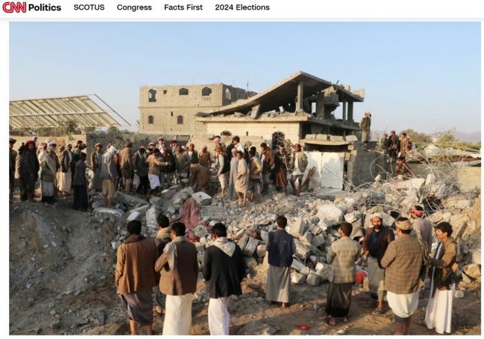 也門民眾聚集在一處空襲現(xiàn)場。圖/美國有線電視新聞網