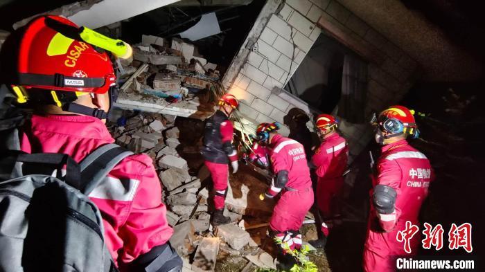 緬甸當(dāng)?shù)貢r間4月1日,中國救援隊、中國香港特區(qū)救援隊等開展聯(lián)合救援行動。(中國應(yīng)急管理部供圖)