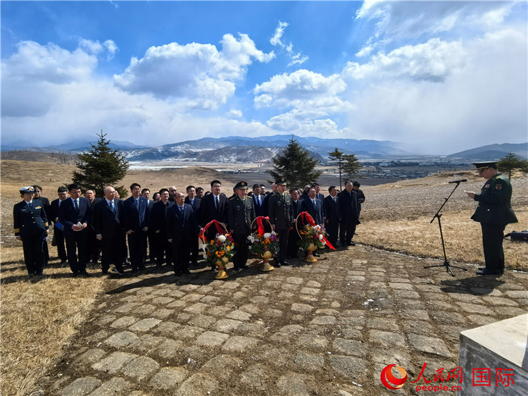 今年是中國人民志愿軍抗美援朝出國作戰(zhàn)75周年。3月30日,在清明節(jié)即將到來之際,中國駐朝鮮大使王亞軍率中國駐朝鮮使館、駐清津總領(lǐng)館全體館員、在朝中資機(jī)構(gòu)和媒體代表、旅朝華僑代表等近60人趕赴咸鏡南道長津郡,祭掃長津邑、新興里中國人民志愿軍烈士陵園,向長津郡下碣隅里楊根思烈士紀(jì)念碑敬獻(xiàn)花籃,祭奠緬懷在長津湖戰(zhàn)役中犧牲的中國人民志愿軍英烈。