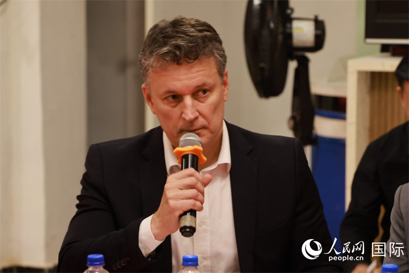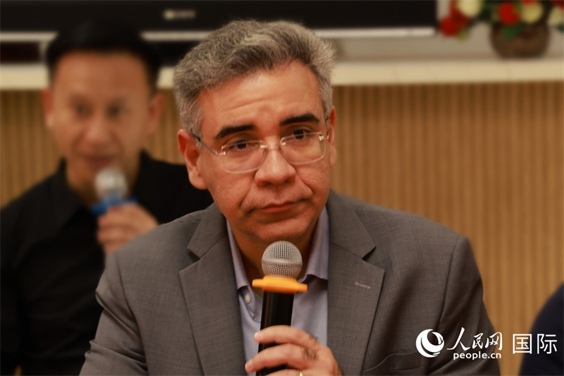 巴西弗魯米嫩塞聯(lián)邦大學(xué)教授、中國問題專家埃萬德羅·卡瓦略在座談會(huì)上致辭。人民網(wǎng)記者 陳海琪攝