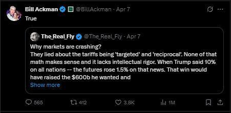 阿克曼還發(fā)帖認(rèn)同對美國新政府關(guān)稅政策“缺乏理論依據(jù)”的批評。