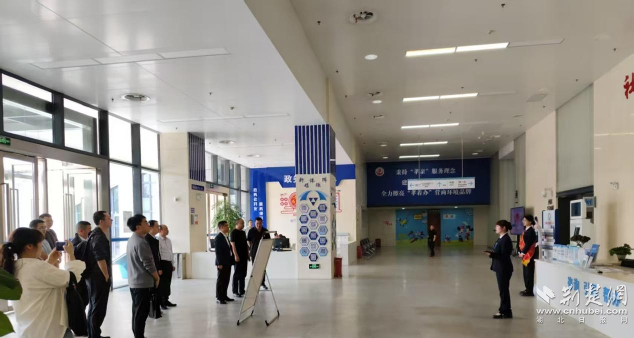 劉建一行詳細了解了大廳功能布局、窗口設(shè)置和智能化設(shè)備運行情況,重點觀摩了“一窗通辦”服務(wù)流程、24小時自助服務(wù)區(qū)和智慧政務(wù)系統(tǒng)應(yīng)用場景,切身感受了孝感市在推進政務(wù)服務(wù)標(biāo)準(zhǔn)化、規(guī)范化、便利化建設(shè)方面取得的成效。