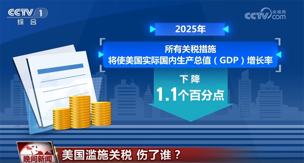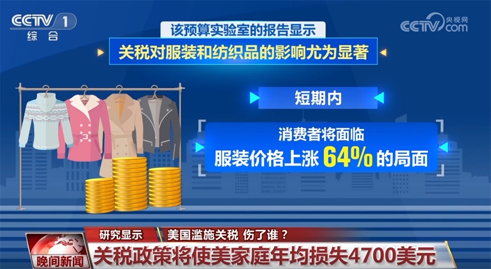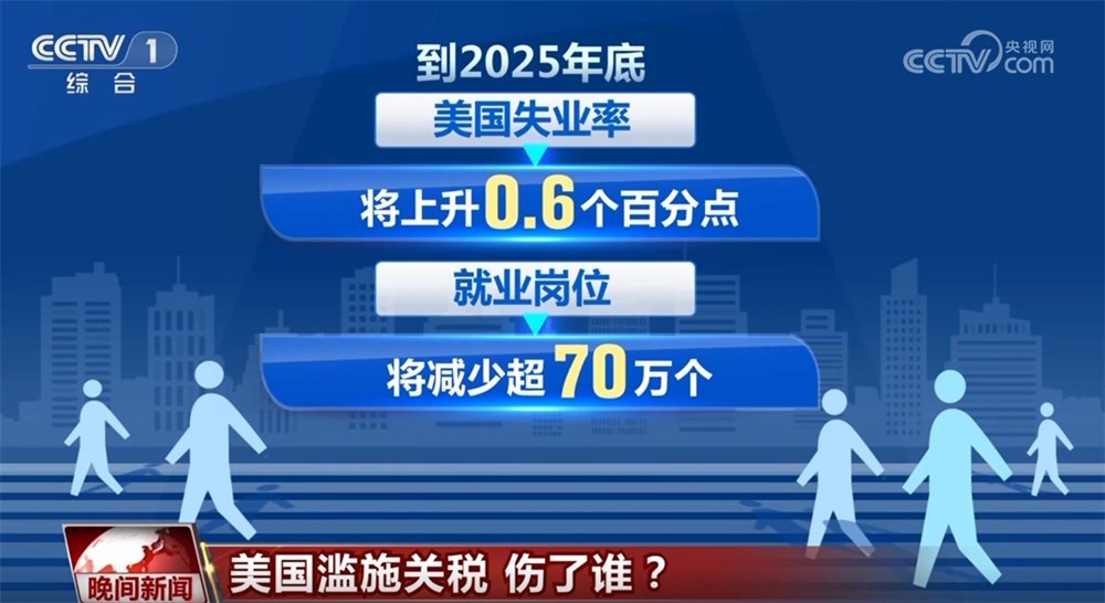 付出代價的還有美國民眾。美國耶魯大學預算實驗室10日發(fā)布的最新研究估算顯示,美國的關稅政策將使美國家庭平均每年損失4700美元。數據顯示,關稅對服裝和紡織品的影響尤為顯著,短期內消費者將面臨服裝價格上漲64%的局面。長期來看,服裝價格將上漲27%。報告顯示,2025年所有關稅措施將使美國實際國內生產總值(GDP)增長率下降1.1個百分點。長期來看,美國經濟將持續(xù)萎縮0.6%,相當于減少1700億美元。此外,到2025年底,美國失業(yè)率將上升0.6個百分點,就業(yè)崗位將減少超70萬個。