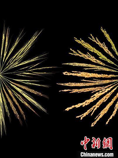 普通野生稻(右)與亞洲栽培稻(左)的稻穗對比展示。(中國科學(xué)院分子植物科學(xué)卓越創(chuàng)新中心供圖)