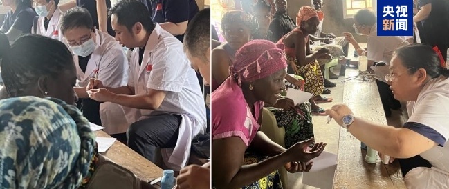 在義診環(huán)節(jié),醫(yī)療隊為200多名當?shù)孛癖娺M行內(nèi)科、外科、婦科、耳鼻喉科等科室義診咨詢,并現(xiàn)場發(fā)放免費的抗瘧藥物及禮品。當?shù)孛癖娂娂姼兄x中國醫(yī)療專家的善舉,祝福中塞友誼萬古長青。(總臺記者 趙倩)