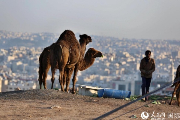約旦首都阿曼街頭的駱駝。人民網(wǎng) 納達爾·達烏德攝