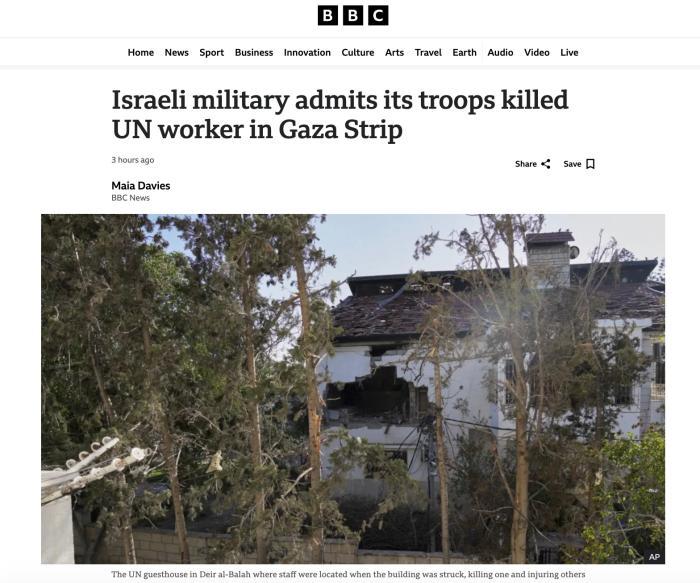 中新網(wǎng)4月25日電 據(jù)英國(guó)廣播公司(BBC)報(bào)道,當(dāng)?shù)貢r(shí)間4月24日,以色列軍方承認(rèn),3月誤襲加沙地帶中部代爾巴拉赫的一處聯(lián)合國(guó)設(shè)施,造成一名聯(lián)合國(guó)工作人員死亡。