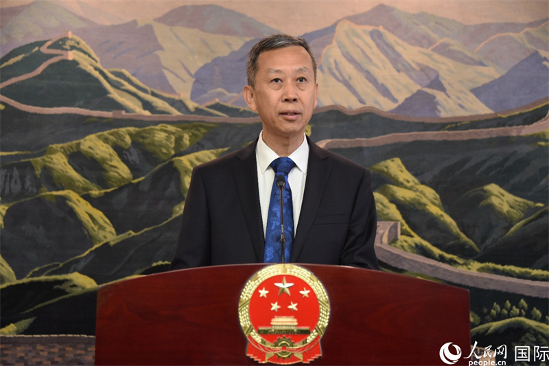 中國駐瑞典大使崔愛民在招待會(huì)上致辭。人民網(wǎng)記者 殷淼攝