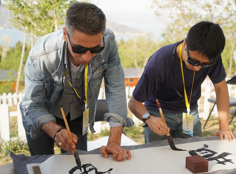 外媒記者書法體驗(yàn)。主辦方供圖