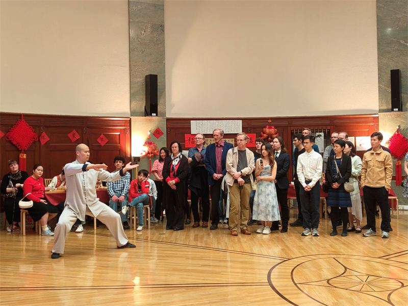 活動(dòng)現(xiàn)場,還進(jìn)行了琴、棋、書、畫和中國舞蹈等中華文化元素的集中展示,包括古箏演奏、中國象棋和圍棋展示、中國書法展示、工筆畫和寫意畫展示、敦煌舞、新疆舞、太極拳和八段錦等精彩節(jié)目,現(xiàn)場掌聲雷動(dòng),在太極拳和八段錦展示過程中,來賓們跟隨展示者做動(dòng)作,體會中國道家剛?cè)嵯酀?jì)、陰陽相生的哲學(xué)思想。