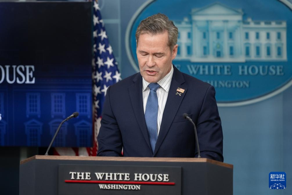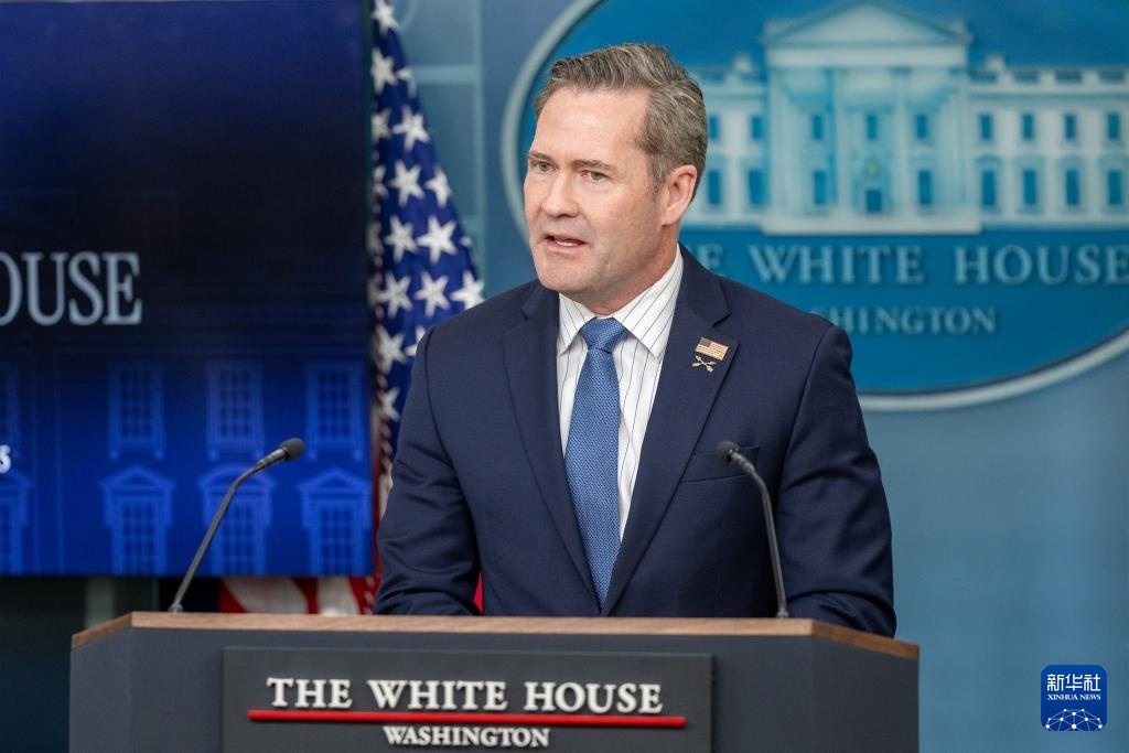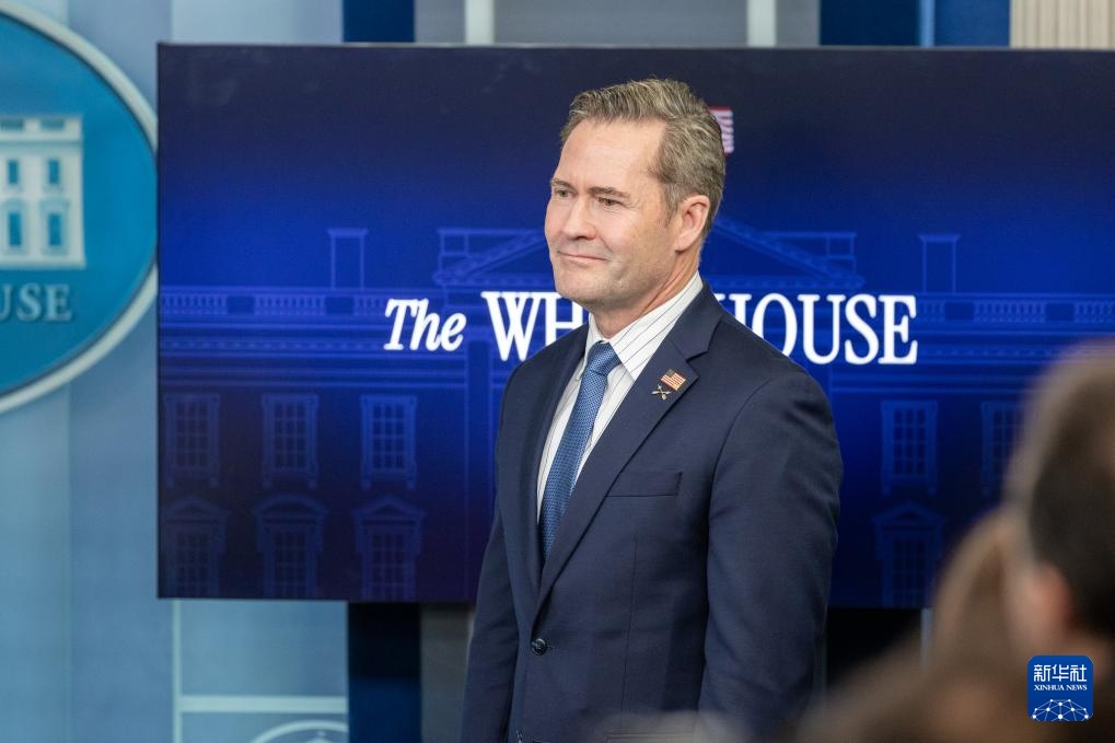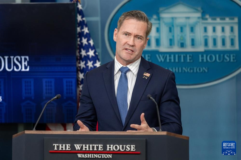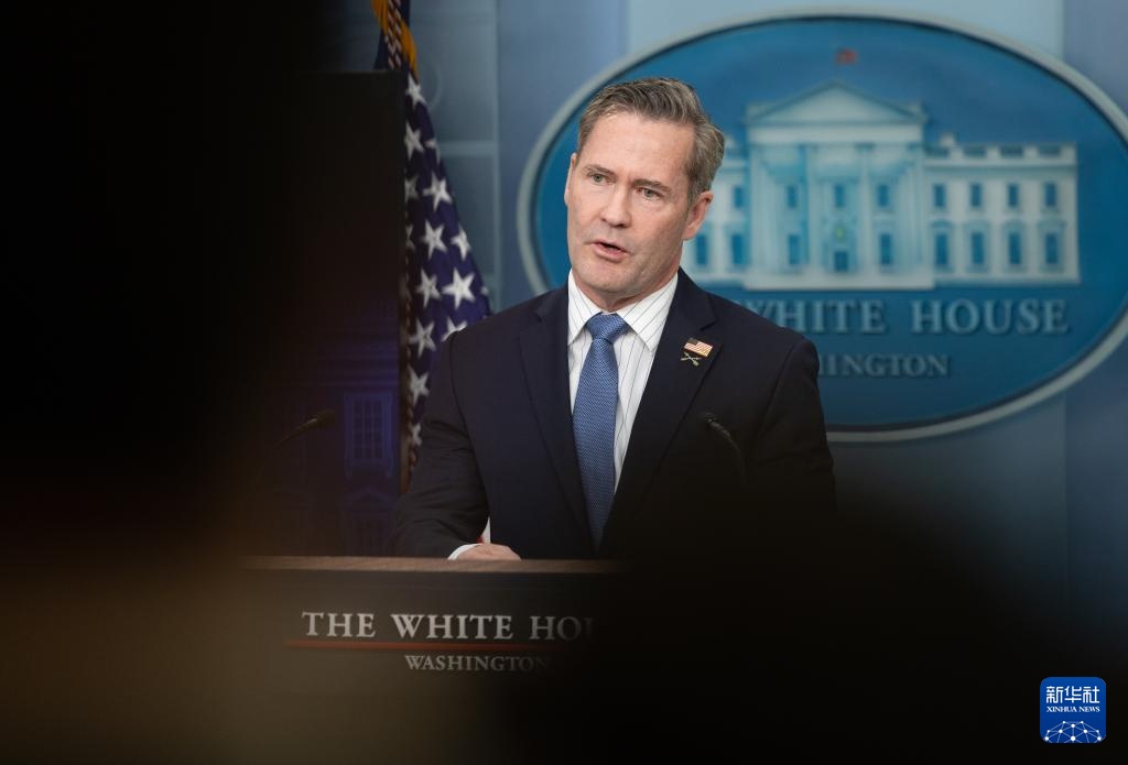 這是美國總統(tǒng)國家安全事務(wù)助理邁克爾·華爾茲在華盛頓白宮出席記者會的資料照片(2月20日攝)。新華社記者 胡友松 攝