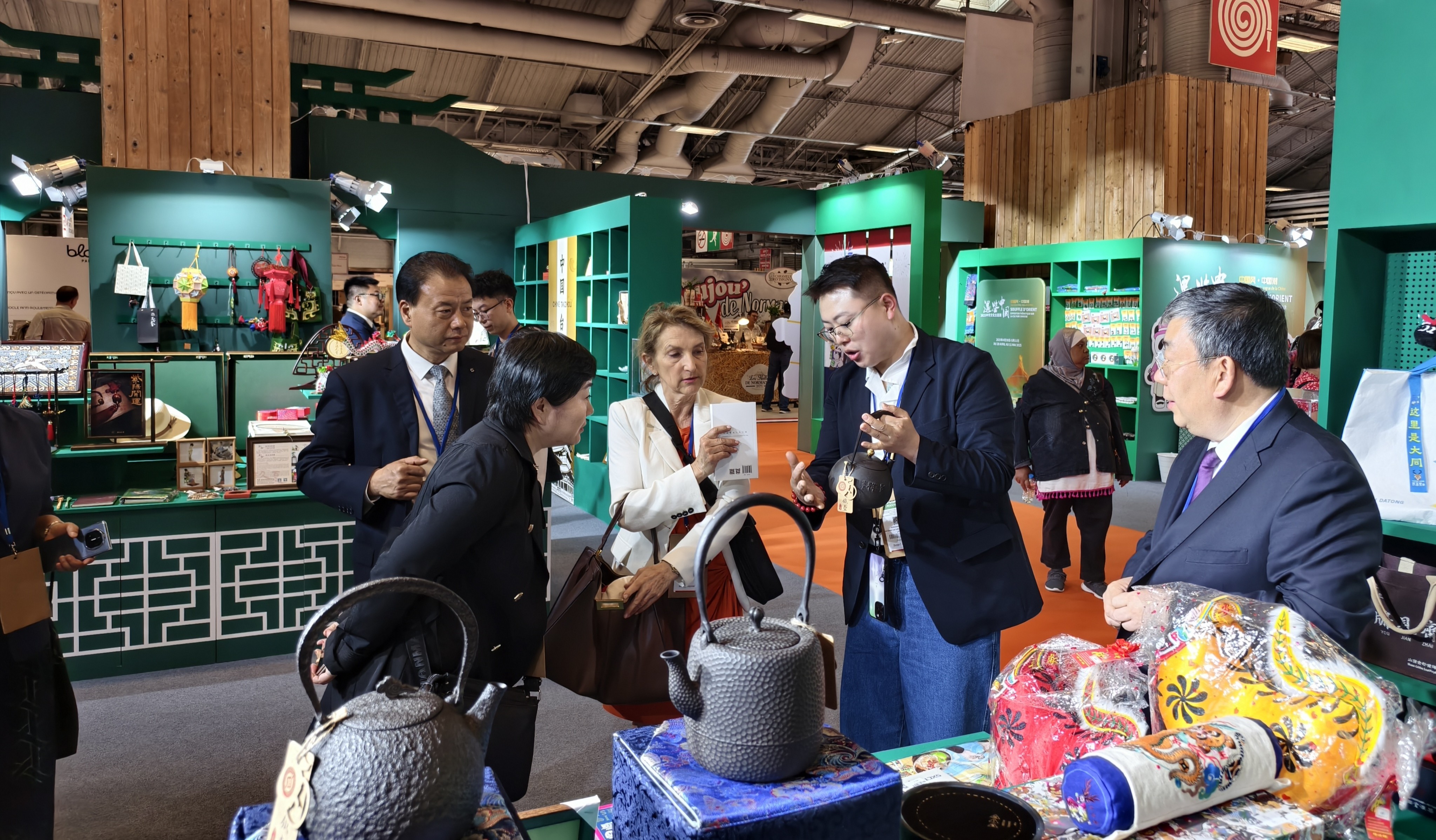 中新網(wǎng)5月2日電 當(dāng)?shù)?025年4月30日,法國巴黎國際博覽會(huì)在巴黎凡爾賽門展覽中心開幕,同時(shí)又一次在塞納河畔掀起一股中國風(fēng)。三晉老字號(hào)晉藝坊鐵壺亮相法國巴黎國際博覽會(huì),再次登上國際舞臺(tái)。在巴黎凡爾賽門展覽館中,晉藝坊古樸典雅的鐵壺?zé)o聲地訴說著中國厚重的茶藝文化,展現(xiàn)著山西晉城光輝燦爛的冶鑄歷史。
