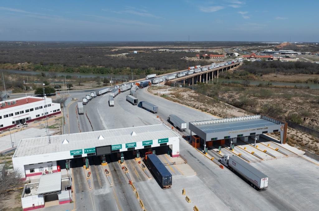 2月15日,在墨西哥新萊昂州哥倫比亞鎮(zhèn),貨車(chē)通過(guò)一處邊檢站后,準(zhǔn)備從國(guó)際橋跨越格蘭德河進(jìn)入美國(guó)。墨美兩國(guó)邊界長(zhǎng)度超過(guò)3100公里,東段主要以格蘭德河為界。新華社記者李夢(mèng)馨攝