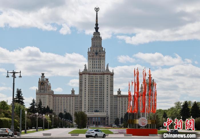 當?shù)貢r間5月6日,莫斯科大學景色宜人。 中新社記者 盛佳鵬 攝