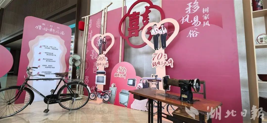 “文明家”區(qū)域,主要展示的有上世紀(jì)70—90年代的婚俗“老三件”和新時(shí)代婚俗新風(fēng)尚,意在加強(qiáng)對(duì)年輕人婚戀觀、家庭觀的引導(dǎo)。