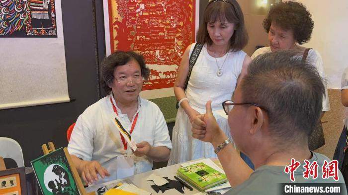 云南剪紙藝術(shù)現(xiàn)場(chǎng)互動(dòng)獲馬來(lái)西亞民眾點(diǎn)贊。 蔡宜婧 攝