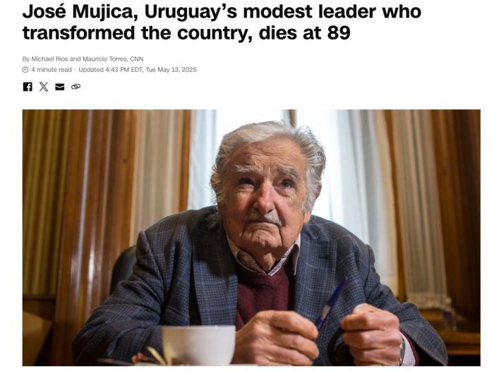 報(bào)道介紹,穆??ㄔ?010年至2015年擔(dān)任烏拉圭總統(tǒng)。2024年4月,穆??ㄍ嘎蹲约夯加惺车腊?。2025年1月,穆希卡接受當(dāng)?shù)孛襟w采訪時(shí)表示,他的食道癌已發(fā)生轉(zhuǎn)移。