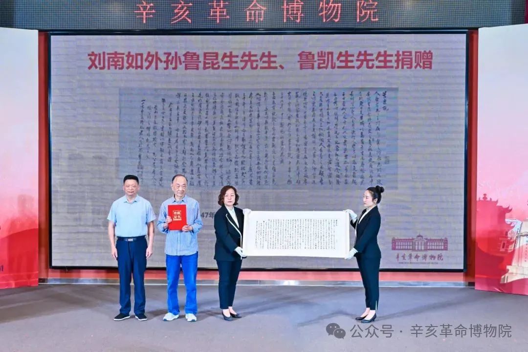 5月14日上午,我院2025年度辛亥革命文物資料捐贈(zèng)儀式在南區(qū)報(bào)告廳舉行。辛亥后裔魯昆生先生、魯凱生先生、倪祖冀先生,畫家周石峰先生的女兒周露露女士,武漢市德森地契博物館館長(zhǎng)李純女士受邀作為捐贈(zèng)者代表出席了捐贈(zèng)儀式。