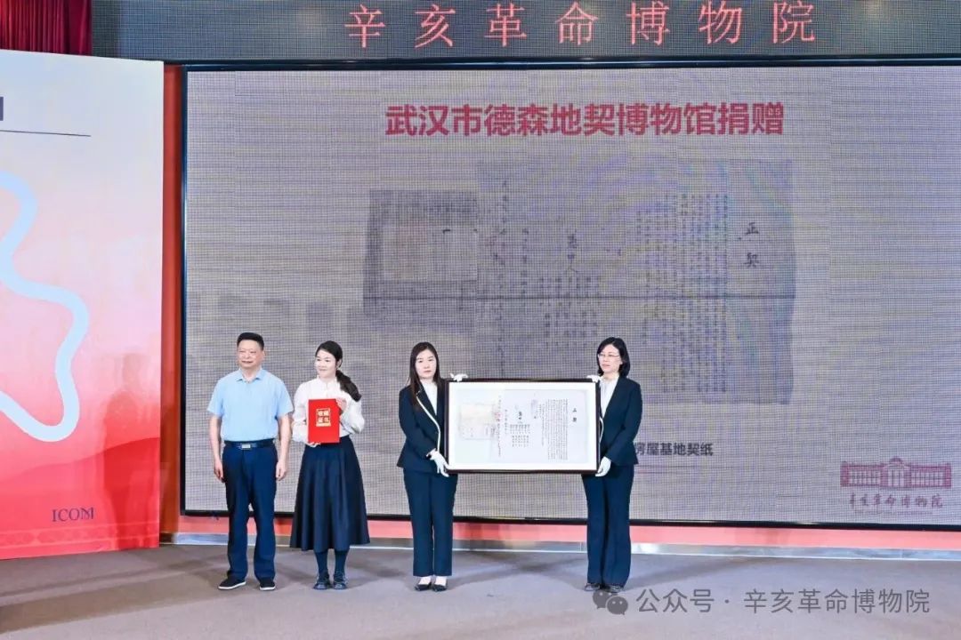 魏德勛院長(zhǎng)向武漢市德森地契博物館館長(zhǎng)李純女士頒發(fā)收藏證書