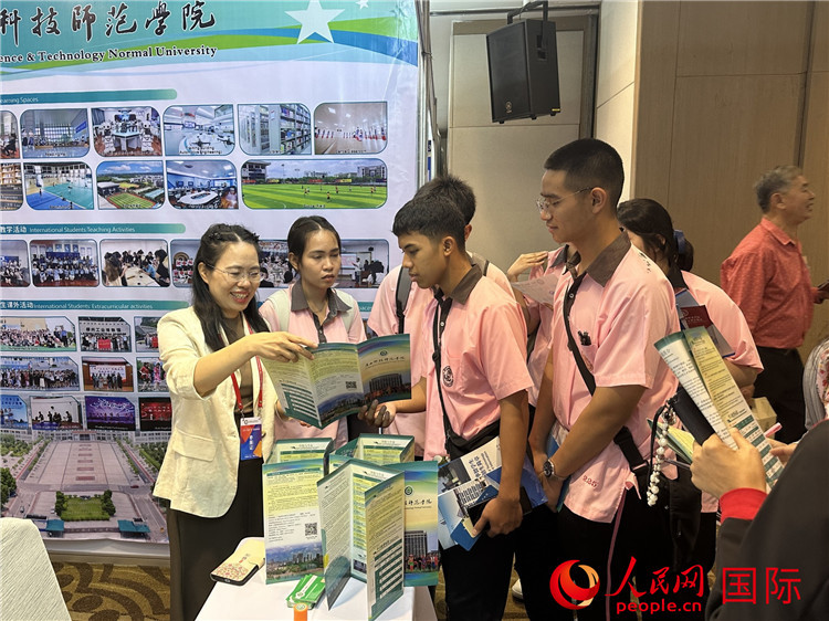 “留學廣西”國際教育展(泰國站)現(xiàn)場,各高校代表正熱情地向泰國學生介紹留學項目。人民網(wǎng)記者 白元琪攝