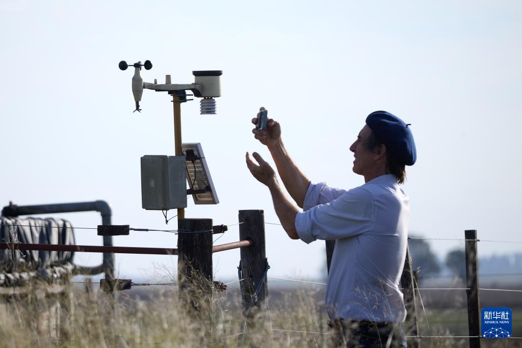 5月14日,埃塞基耶爾·內(nèi)爾維在阿根廷潘帕斯草原萊因迪亞納牧場觀察風(fēng)向。新華社記者 孟鼎博 攝