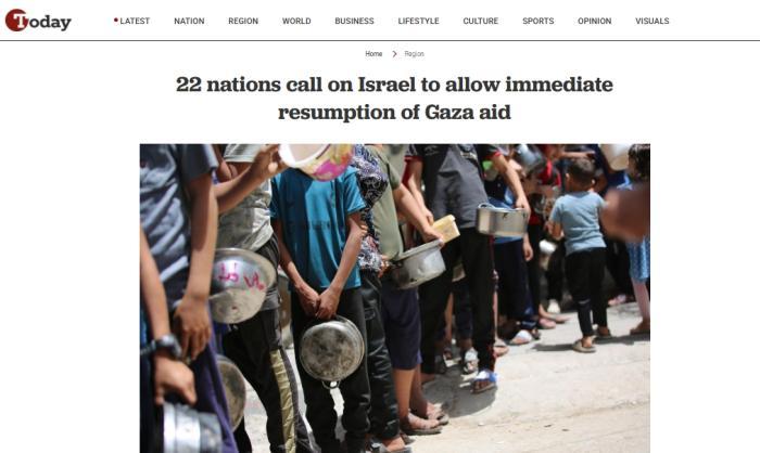 報道稱,22國外交部長與歐盟外交與安全政策高級代表卡婭·卡拉斯在一份聯(lián)合聲明中承認,“援助有所恢復”,但強調(diào)以色列“已阻止人道主義援助進入加沙超過兩個月”。