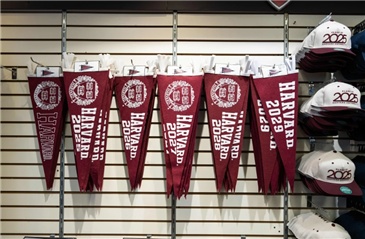 △哈佛大學商品在馬薩諸塞州劍橋市的一家商店里展示