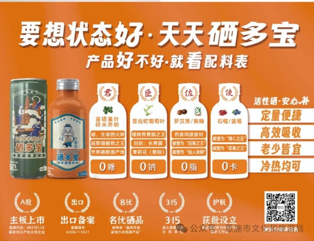 恩施一心文化發(fā)展有限公司的女兒會流沙金屬冰箱貼和硒多寶飲品集團股份有限公司的硒多寶富硒無糖藤茶植物飲料獲得銀獎。恩施市花禧門文化創(chuàng)意有限公司的土苗紋樣印花雙拼包和恩施市芭土康油茶湯經(jīng)營部的土家油茶湯獲得銅獎。這些商品的獲獎,展現(xiàn)了恩施市旅游商品的多樣性和豐富性。這不僅是對恩施市旅游商品開發(fā)成果的肯定,也為恩施市的旅游產(chǎn)業(yè)發(fā)展注入了新的動力。
