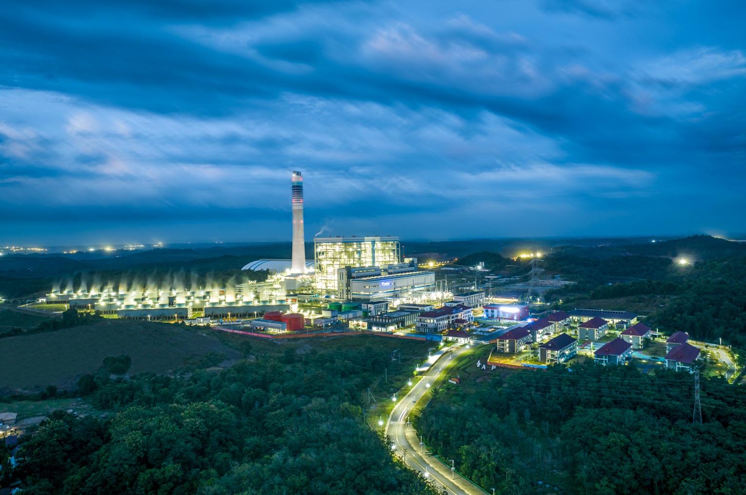 華電(印尼)玻雅電站工程夜景。華電(印尼)玻雅電站供圖