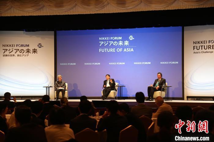 當(dāng)?shù)貢r(shí)間5月29日,第30屆“亞洲的未來(lái)”國(guó)際論壇在日本東京開(kāi)幕。中國(guó)財(cái)政部原副部長(zhǎng)朱光耀(中)、國(guó)家國(guó)際發(fā)展合作署原署長(zhǎng)羅照輝(右)出席活動(dòng)并發(fā)表演講。中新網(wǎng)記者 朱晨曦 攝
