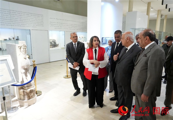 伊拉克文化、旅游和文物部長艾哈邁德·法卡克(右二)參觀博物館。人民網(wǎng)伊納斯·易卜拉欣攝