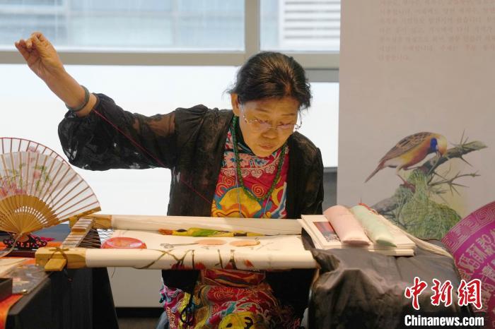 當(dāng)?shù)貢r(shí)間6月5日,湖北省非物質(zhì)文化遺產(chǎn)“大冶刺繡”亮相首爾國(guó)際旅游展。中新網(wǎng)記者 劉旭 攝