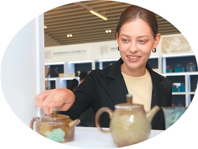 圖為近日,一名女子在匈牙利布達(dá)佩斯參觀中國(guó)非遺旅游文創(chuàng)展。新華社記者 彭子洋攝