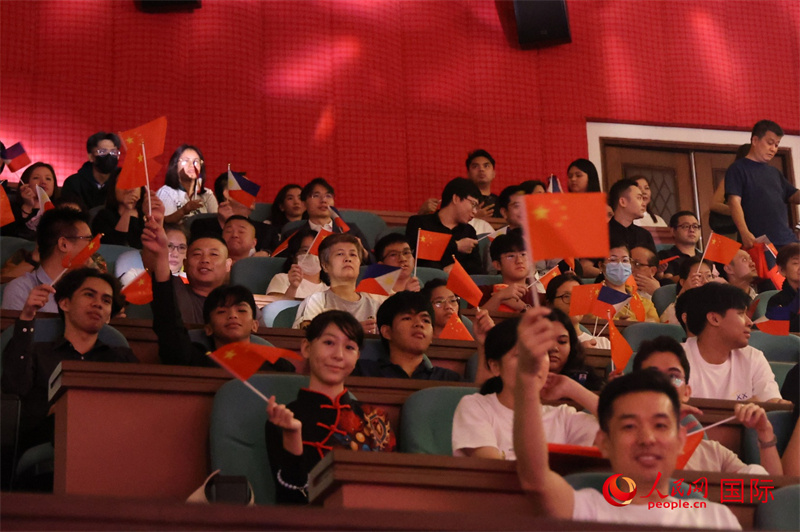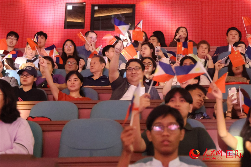 現(xiàn)場(chǎng)觀眾揮舞兩國(guó)國(guó)旗,表達(dá)兩國(guó)人民對(duì)中菲友好的誠(chéng)摯愿望和殷切期望。人民網(wǎng) 記者樊帆攝
